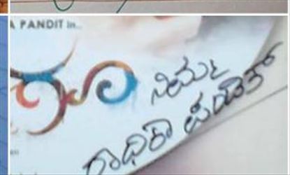 Sources have stated that the actress stands out from the rest of the actresses who unnecessarily use English language. She has time and again proved that the hold on English language is not a measure of one's intelligence. We now have a documented proof which shows Radhika Pandit's ardent devotion to the language, Kannada. Take a look at Radhika Pandit's autograph, which she has been maintaining ever since she debuted in Sandalwood.